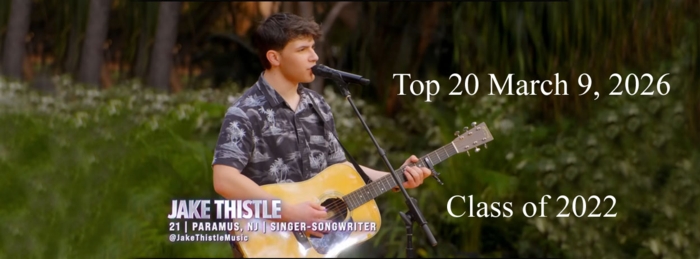 Jake Thistle, advances from Top 30 to Top 20 on Monday March 9. On Monday, March 16 viewer voting begins.