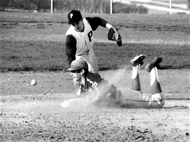 Below is a picture of Mike Danylchuck ('67) trying to tag Teaneck all-star Elliot Silverstein at 2nd base. He looks safe to me.
