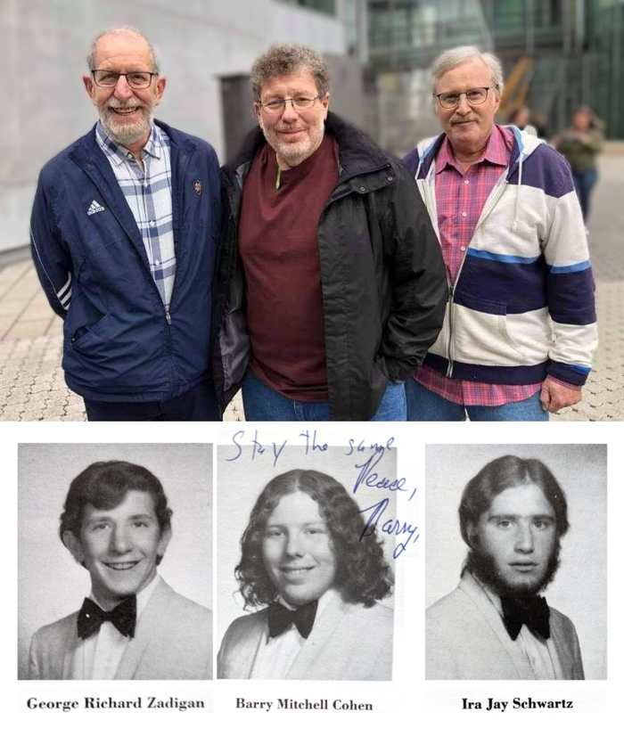 A few classmates had group shots taken this year, so I composed with their yearbook or other school photos. Above and below are the same folks. Who's who made obvious with the clipping from yearbooks.