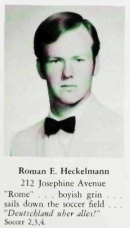 Roman Heckelmann, age 43, of Simpsonville, SC, died suddenly on June 27, 1995. He was a graduate of Paramus High School and Clemson University in South Carolina.
