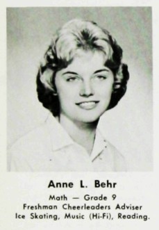 On the first day of school at the beginning of my Sophmore year, I walked into my assigned homeroom and there was the tallest, prettiest, blond teacher I ever saw. I remember scrambling with the other guys to take a desk assigment in the front row. It was right out of the Little Rascals when they met their teacher Miss Mcgillicuddy.